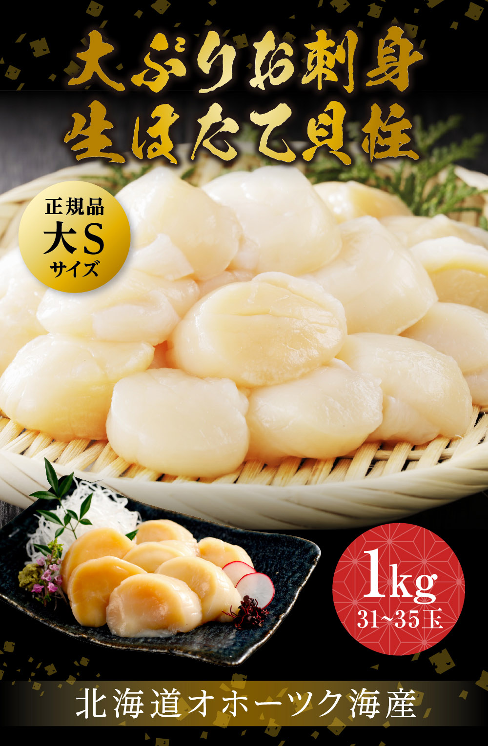 大ぶりお刺身生ほたて貝柱 1kg 大Sサイズ(31~35玉)【送料別】【数量限定】