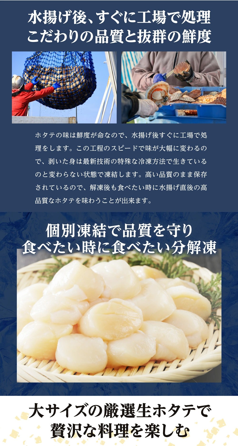 大ぶりお刺身生ほたて貝柱 1kg 大Sサイズ(31~35玉)【送料別】【数量限定】